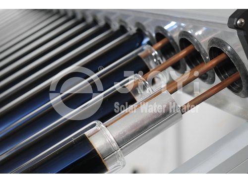 O cano em U está equipado com um permutador de calor e pode absorver o calor diretamente através da folha de alumínio, realizando assim a circulação da troca de calor. Na eventualidade de um tubo a vácuo se danificar, este coletor solar ainda funciona devido à inexistência de água no interior dos tubos a vácuo.